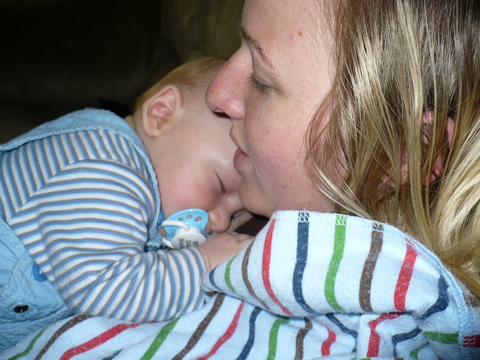 And what post would be complete without a sleep update? Well at least we are getting good naps!! And night time sleep is a little bit better, but that's mainly because I've just completely given in. Which is a good thing. Sometimes you just have to let go and admit that you have no control over a situation (or person!). So when Gabriel simply will not stay asleep on his own in his crib, I just sleep with him. Unfortunately our bed is not big enough for the three of us, so this means Gabriel and I sleep on the couch, which is actually very comfortable, more so than the two of us in the bed. I'm also trying out sleeping in his room, on the recliner, when he is sleeping in his crib. This hasn't seemed to make a difference so far, however. Last night we actually got our longest stretch of sleep in ages, I think it was close to six hours! Of course it was on the couch, with Gabriel in my arms, but still. I read something by a mom who was going through a similar thing with her baby, and she said that she had to just stop worrying about the bad habits that the books told her she would be creating, and just give her baby what she needed. And it worked fine for her. So that's what I'm trying to do. If Gabriel needs to sleep with me for a little bit, I can do that. His sleeping habits will get better some day. I know they will . . .