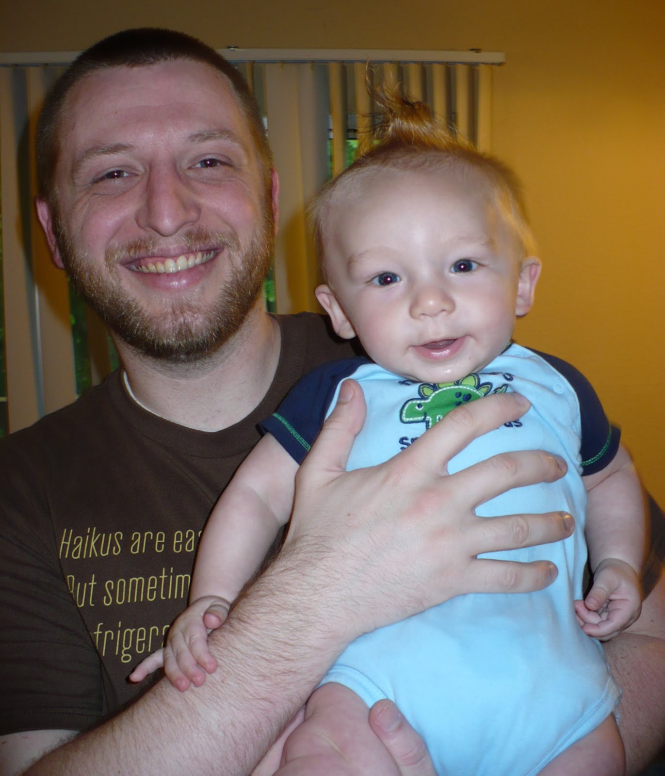Another thing that happened since my last post was that we turned six months old!! So there was a doctor's visit, which went fine. Gabriel is right about average for both height and weight (oddly enough he's just above for weight, just below for height). He's about 18 lbs and a little over 26" long/tall. His head circumference is still well above average though, which I find amusing. He just needs a big head to hold that large brain of his!
